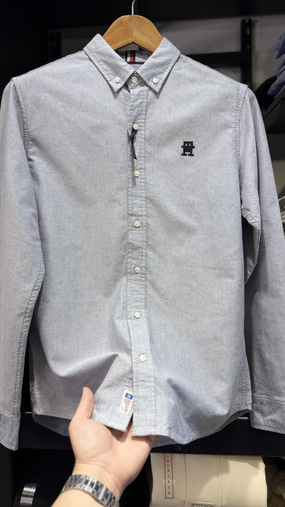 قميص TOMMY سادة كم مع شعار صغير سكني L